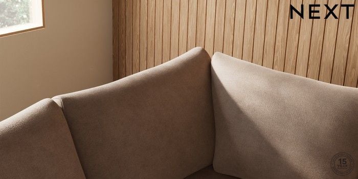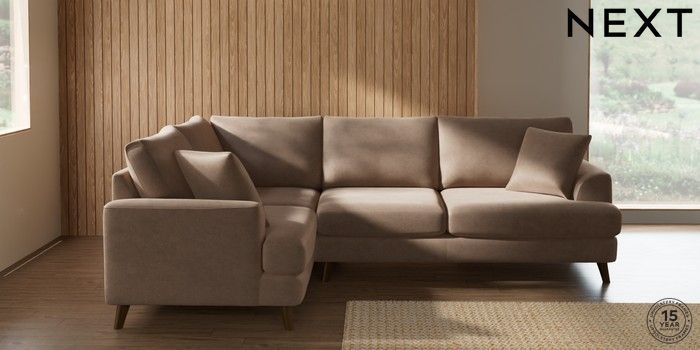 7.2.10 Buy Parker Medium Corner Sofa - Left Hand Luxe Chenille Mid Natural Low Retro Tapered - Mid from the Next UK online shop Click here to use our accessible website
