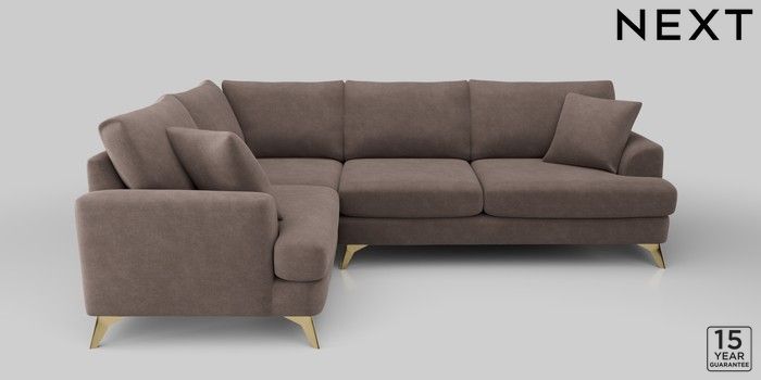 6.12.1 Buy Parker Medium Corner Sofa - Left Hand Luxe Chenille Mink Brown High Metal - Brass from the Next UK online shop Click here to use our accessible website