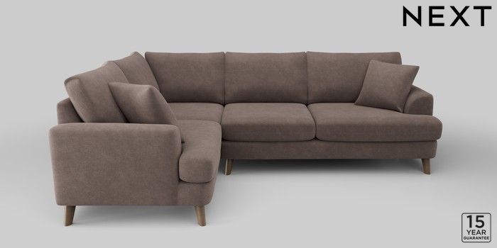 6.12.1 Buy Parker Medium Corner Sofa - Left Hand Luxe Chenille Mink Brown Low Retro Tapered - Mid from the Next UK online shop Click here to use our accessible website