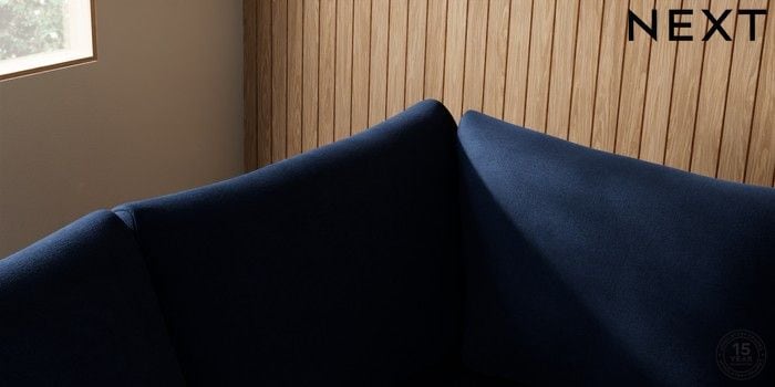 7.2.10 Buy Parker Medium Corner Sofa - Left Hand Luxe Chenille Navy Blue High Metal - Brass from the Next UK online shop Click here to use our accessible website