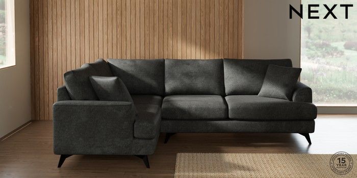 7.2.10 Buy Parker Medium Corner Sofa - Left Hand Plush Chenille Dark Grey High Metal - Black from the Next UK online shop Click here to use our accessible website