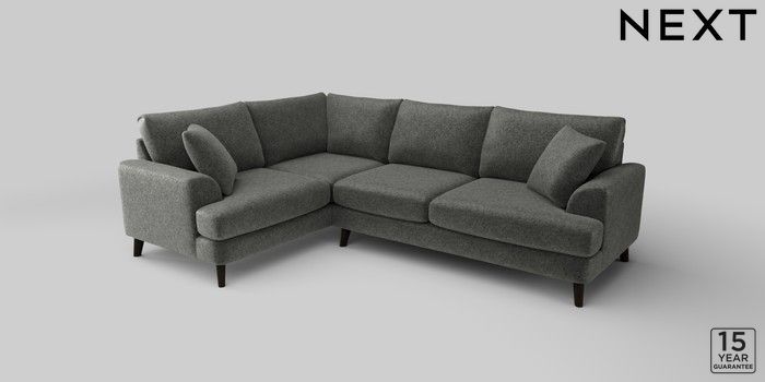 6.12.1 Buy Parker Medium Corner Sofa - Left Hand Plush Chenille Dark Grey Low Retro Tapered - Dark from the Next UK online shop Click here to use our accessible website