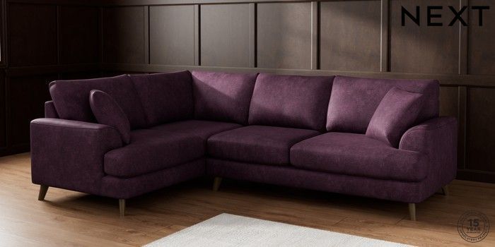 7.2.5 Buy Parker Medium Corner Sofa - Left Hand Plush Chenille Dark Plum Purple Low Retro Tapered - Mid from the Next UK online shop Click here to use our accessible website