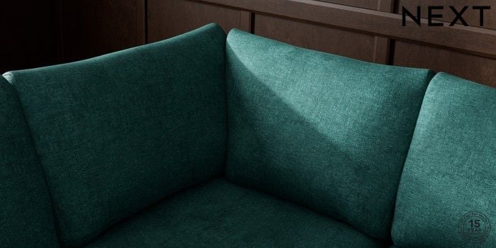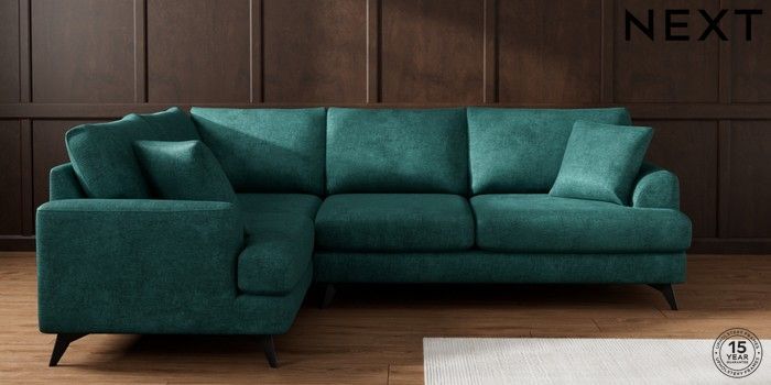 7.2.10 Buy Parker Medium Corner Sofa - Left Hand Plush Chenille Dark Teal Green High Metal - Black from the Next UK online shop Click here to use our accessible website