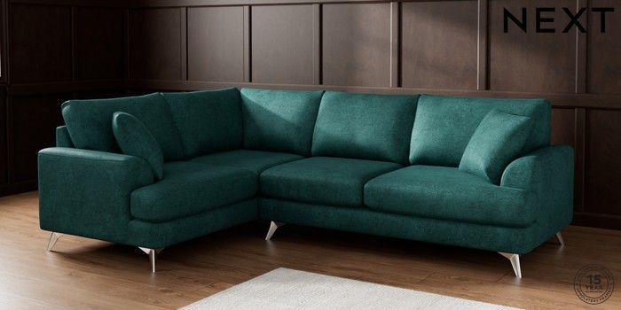 7.2.5 Buy Parker Medium Corner Sofa - Left Hand Plush Chenille Dark Teal Green High Metal - Chrome from the Next UK online shop Click here to use our accessible website