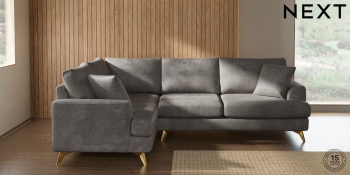 7.2.10 Buy Parker Medium Corner Sofa - Left Hand Plush Chenille Light Grey High Metal - Brass from the Next UK online shop Click here to use our accessible website