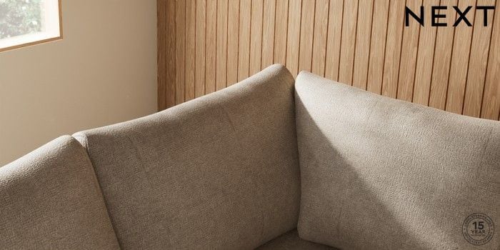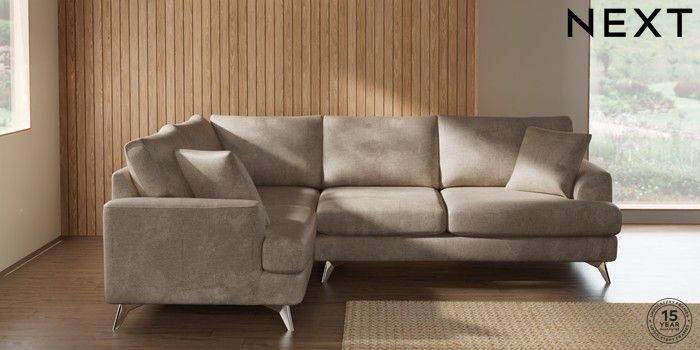 7.2.10 Buy Parker Medium Corner Sofa - Left Hand Plush Chenille Light Natural High Metal - Chrome from the Next UK online shop Click here to use our accessible website
