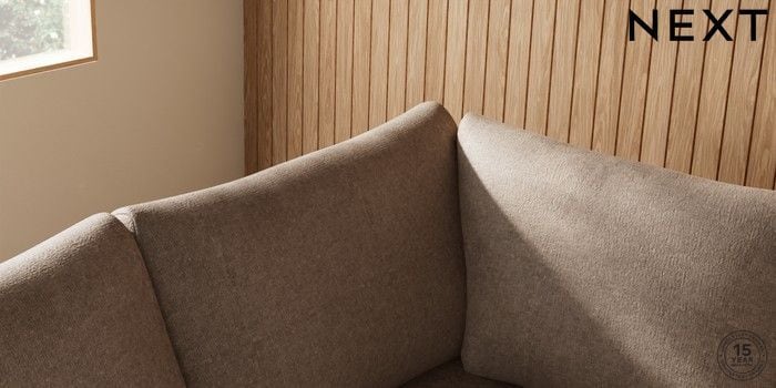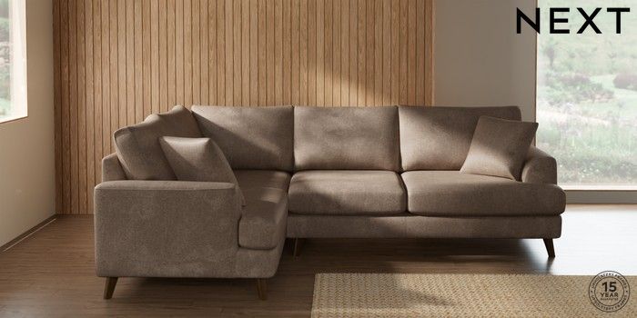 7.2.10 Buy Parker Medium Corner Sofa - Left Hand Plush Chenille Mid Natural Low Retro Tapered - Mid from the Next UK online shop Click here to use our accessible website