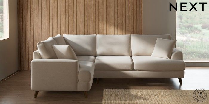 7.2.10 Buy Parker Medium Corner Sofa - Left Hand Studio Chenille Oyster Low Retro Tapered - Mid from the Next UK online shop Click here to use our accessible website