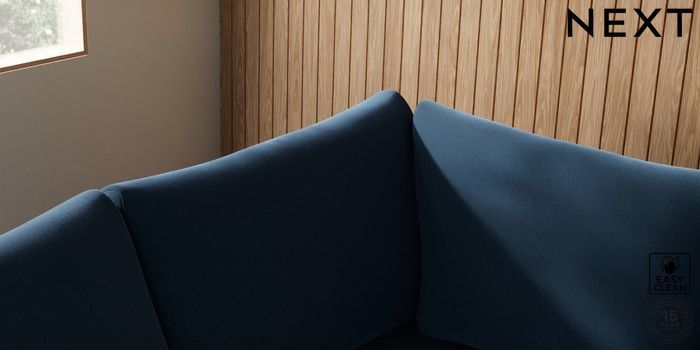 7.2.10 Buy Parker Medium Corner Sofa - Left Hand Plush Velvet Easy Clean Airforce Blue High Metal - Black from the Next UK online shop Click here to use our accessible website