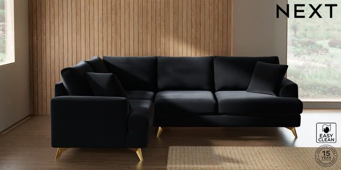 7.2.10 Buy Parker Medium Corner Sofa - Left Hand Plush Velvet Easy Clean Charcoal Grey High Metal - Brass from the Next UK online shop Click here to use our accessible website