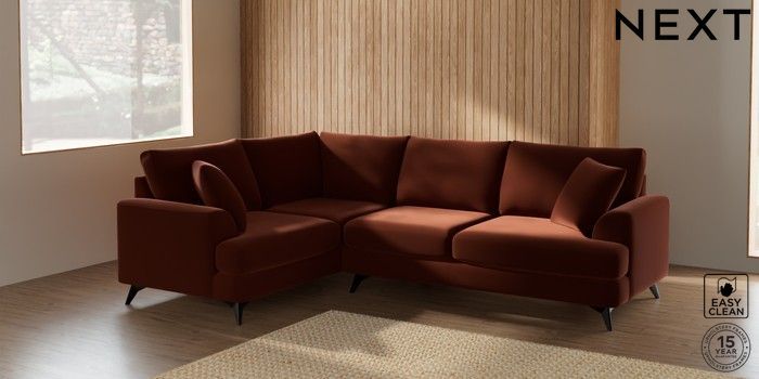 7.2.5 Buy Parker Medium Corner Sofa - Left Hand Plush Velvet Easy Clean Ginger Orange High Metal - Black from the Next UK online shop Click here to use our accessible website