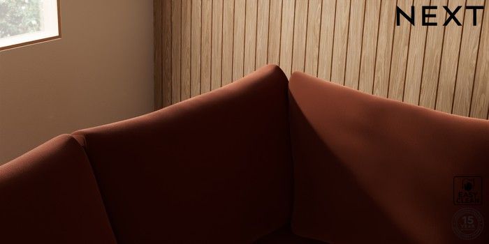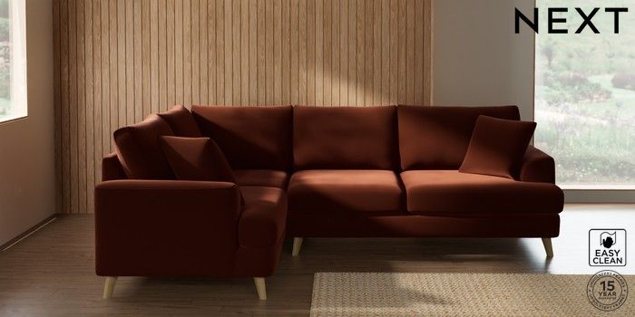 7.2.10 Buy Parker Medium Corner Sofa - Left Hand Plush Velvet Easy Clean Ginger Orange Low Retro Tapered - Light from the Next UK online shop Click here to use our accessible website