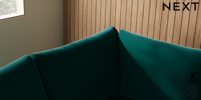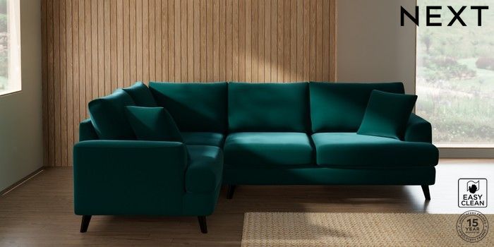 7.2.10 Buy Parker Medium Corner Sofa - Left Hand Plush Velvet Easy Clean Juniper Green Low Retro Tapered - Dark from the Next UK online shop Click here to use our accessible website