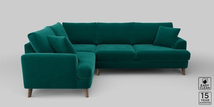 6.12.1 Buy Parker Medium Corner Sofa - Left Hand Plush Velvet Easy Clean Juniper Green Low Retro Tapered - Mid from the Next UK online shop Click here to use our accessible website