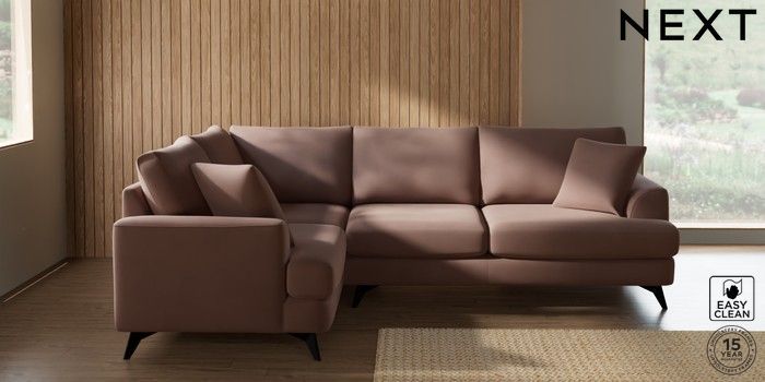 7.2.10 Buy Parker Medium Corner Sofa - Left Hand Plush Velvet Easy Clean Mid Natural High Metal - Black from the Next UK online shop Click here to use our accessible website