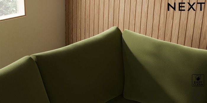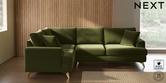 7.3.1 Buy Parker Medium Corner Sofa - Left Hand Plush Velvet Easy Clean Mid Olive Green High Metal - Brass from the Next UK online shop Click here to use our accessible website