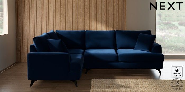 7.2.10 Buy Parker Medium Corner Sofa - Left Hand Plush Velvet Easy Clean Navy Blue High Metal - Black from the Next UK online shop Click here to use our accessible website