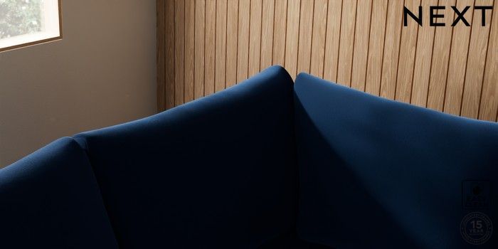 7.2.10 Buy Parker Medium Corner Sofa - Left Hand Plush Velvet Easy Clean Navy Blue Low Retro Tapered - Dark from the Next UK online shop Click here to use our accessible website