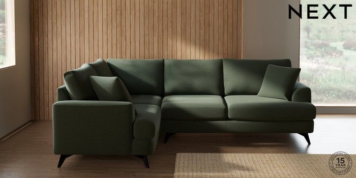 7.2.10 Buy Parker Medium Corner Sofa - Left Hand Relaxed Linen Look Dark Green High Metal - Black from the Next UK online shop Click here to use our accessible website