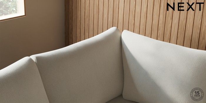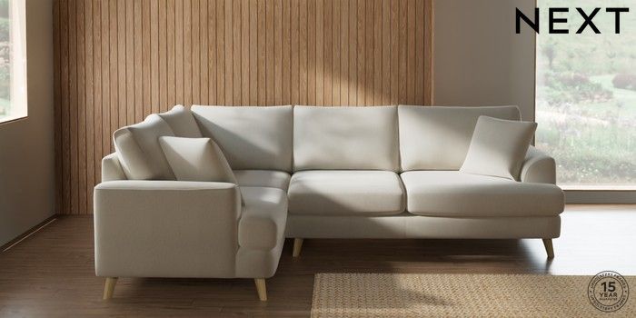 7.2.10 Buy Parker Medium Corner Sofa - Left Hand Relaxed Linen Look Oyster Low Retro Tapered - Light from the Next UK online shop Click here to use our accessible website