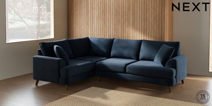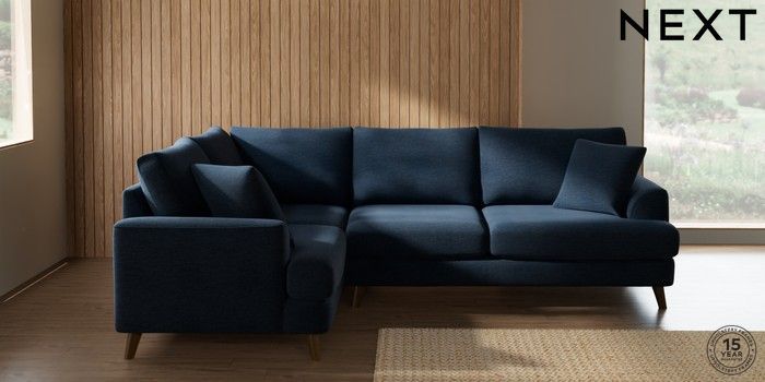 7.0.3 Buy Parker Medium Corner Sofa - Left Hand Ripple Chenille Dark Blue Low Retro Tapered - Mid from the Next UK online shop Click here to use our accessible website