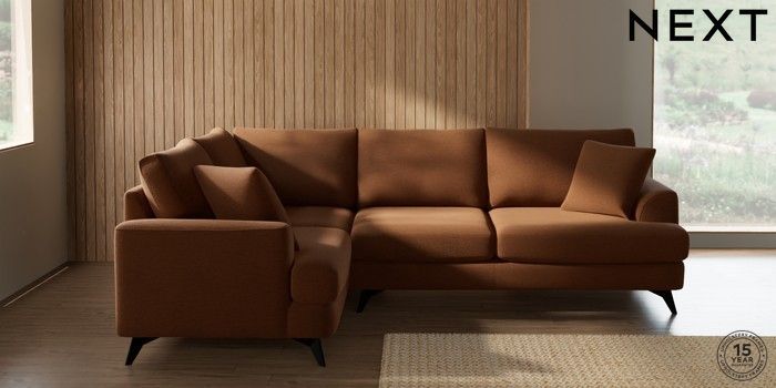 7.2.10 Buy Parker Medium Corner Sofa - Left Hand Ripple Chenille Mid Rust Brown High Metal - Black from the Next UK online shop Click here to use our accessible website