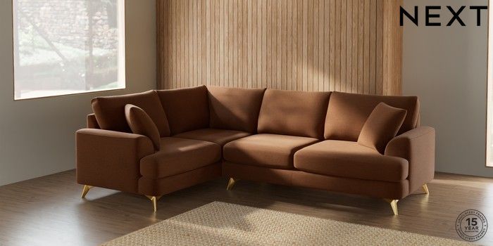 7.2.5 Buy Parker Medium Corner Sofa - Left Hand Ripple Chenille Mid Rust Brown High Metal - Brass from the Next UK online shop Click here to use our accessible website