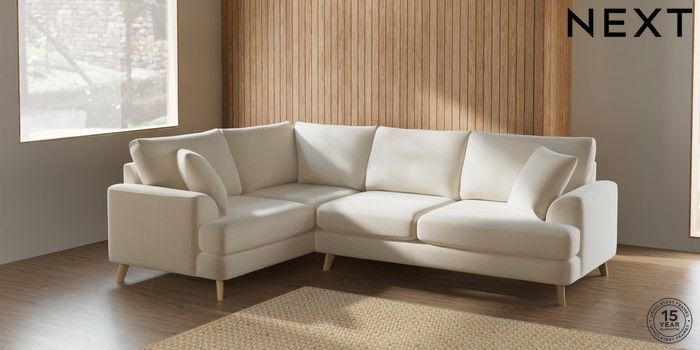 7.2.5 Buy Parker Medium Corner Sofa - Left Hand Ripple Chenille Oyster Low Retro Tapered - Light from the Next UK online shop Click here to use our accessible website
