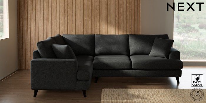 7.2.10 Buy Parker Medium Corner Sofa - Left Hand Tweedy Blend Easy Clean Charcoal Grey Low Retro Tapered - Dark from the Next UK online shop Click here to use our accessible website