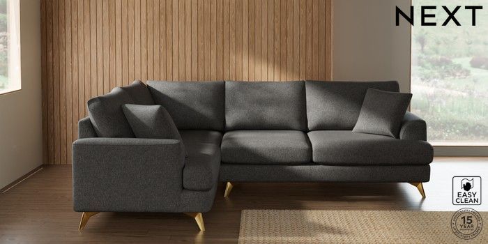 7.2.10 Buy Parker Medium Corner Sofa - Left Hand Tweedy Blend Easy Clean Dark Grey High Metal - Brass from the Next UK online shop Click here to use our accessible website