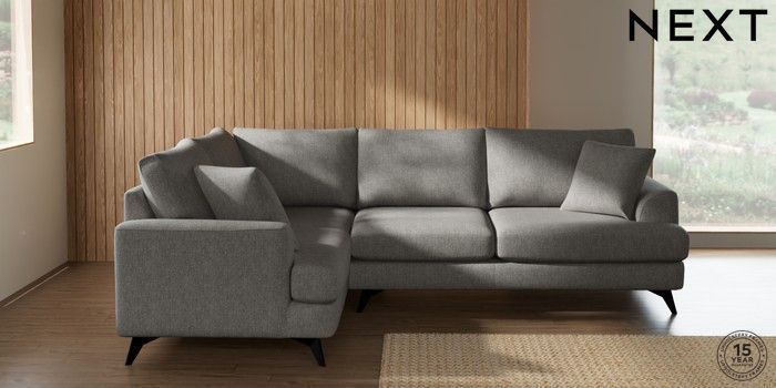 7.2.10 Buy Parker Medium Corner Sofa - Left Hand Tweedy Chenille Mid Grey High Metal - Black from the Next UK online shop Click here to use our accessible website