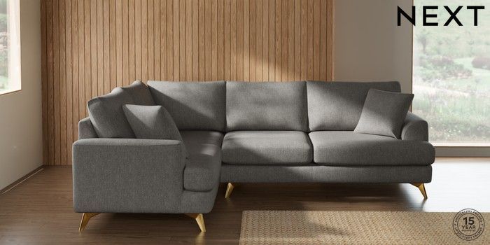 7.2.10 Buy Parker Medium Corner Sofa - Left Hand Tweedy Chenille Mid Grey High Metal - Brass from the Next UK online shop Click here to use our accessible website