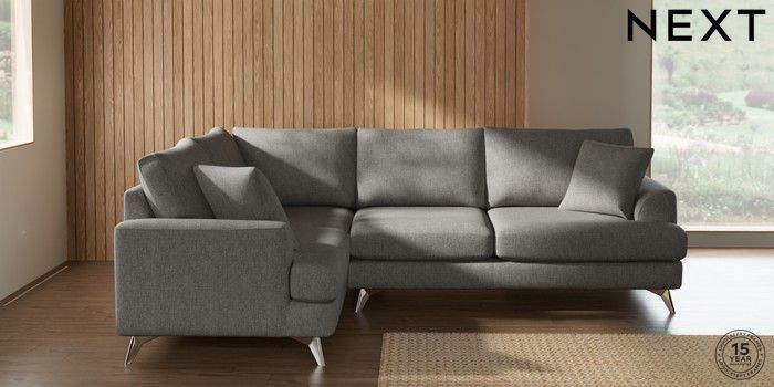 7.2.10 Buy Parker Medium Corner Sofa - Left Hand Tweedy Chenille Mid Grey High Metal - Chrome from the Next UK online shop Click here to use our accessible website