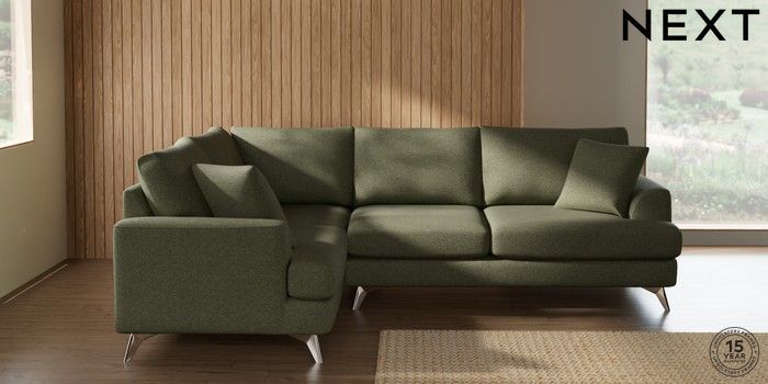 7.2.10 Buy Parker Medium Corner Sofa - Left Hand Tweedy Chenille Mid Moss Green High Metal - Chrome from the Next UK online shop Click here to use our accessible website