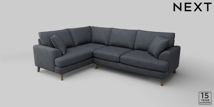 6.12.1 Buy Parker Medium Corner Sofa - Left Hand Tweedy Chenille Navy Blue Low Retro Tapered - Mid from the Next UK online shop Click here to use our accessible website