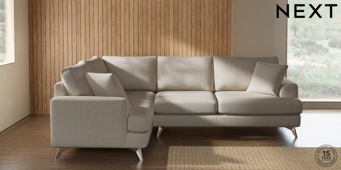 7.2.10 Buy Parker Medium Corner Sofa - Left Hand Tweedy Chenille Oyster High Metal - Chrome from the Next UK online shop Click here to use our accessible website