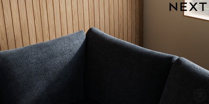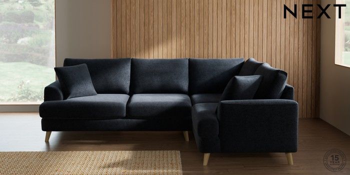 7.2.10 Buy Parker Medium Corner Sofa - Right Hand Boucle Chenille Dark Slate Blue Low Retro Tapered - Light from the Next UK online shop Click here to use our accessible website