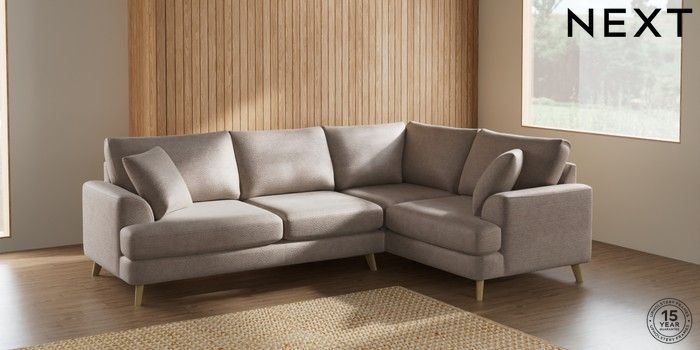 7.2.5 Buy Parker Medium Corner Sofa - Right Hand Boucle Chenille Light Natural Low Retro Tapered - Light from the Next UK online shop Click here to use our accessible website