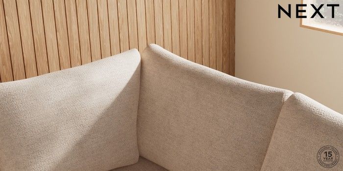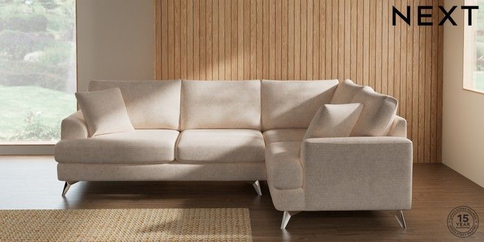 7.2.10 Buy Parker Medium Corner Sofa - Right Hand Boucle Chenille Oyster High Metal - Chrome from the Next UK online shop Click here to use our accessible website