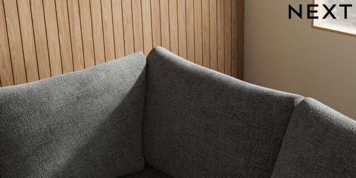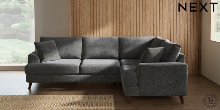 7.2.10 Buy Parker Medium Corner Sofa - Right Hand Chunky Chenille Dark Grey Low Retro Tapered - Mid from the Next UK online shop Click here to use our accessible website