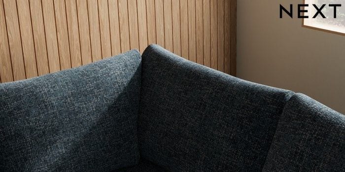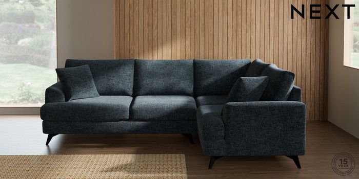 7.2.10 Buy Parker Medium Corner Sofa - Right Hand Chunky Chenille Dark Navy Blue High Metal - Black from the Next UK online shop Click here to use our accessible website