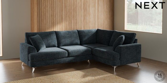 7.2.5 Buy Parker Medium Corner Sofa - Right Hand Chunky Chenille Dark Navy Blue High Metal - Chrome from the Next UK online shop Click here to use our accessible website