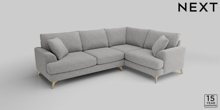 6.11.4 Buy Parker Medium Corner Sofa - Right Hand Chunky Chenille Light Grey High Metal - Brass from the Next UK online shop Click here to use our accessible website