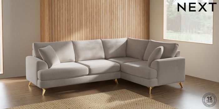 7.2.5 Buy Parker Medium Corner Sofa - Right Hand Chunky Chenille Oyster High Metal - Brass from the Next UK online shop Click here to use our accessible website