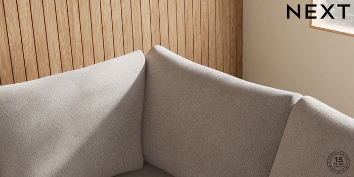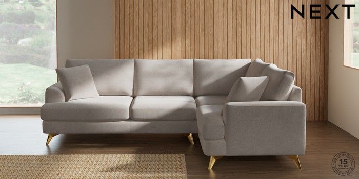 7.2.10 Buy Parker Medium Corner Sofa - Right Hand Chunky Chenille Oyster High Metal - Brass from the Next UK online shop Click here to use our accessible website