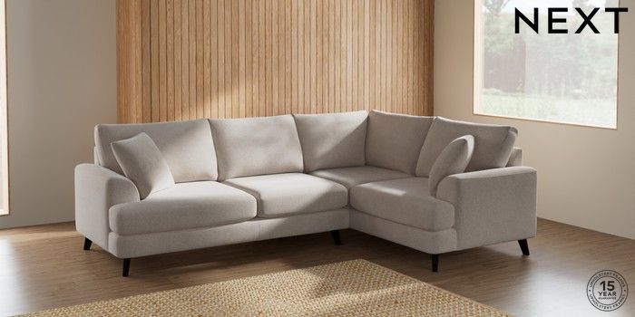 7.2.5 Buy Parker Medium Corner Sofa - Right Hand Chunky Chenille Oyster Low Retro Tapered - Dark from the Next UK online shop Click here to use our accessible website