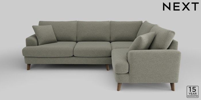 6.12.1 Buy Parker Medium Corner Sofa - Right Hand Chunky Marl Light Olive Green Low Retro Tapered - Mid from the Next UK online shop Click here to use our accessible website
