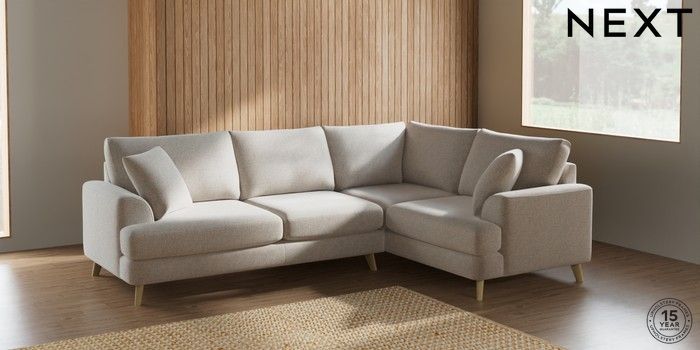 7.2.5 Buy Parker Medium Corner Sofa - Right Hand Chunky Marl Oyster Low Retro Tapered - Light from the Next UK online shop Click here to use our accessible website