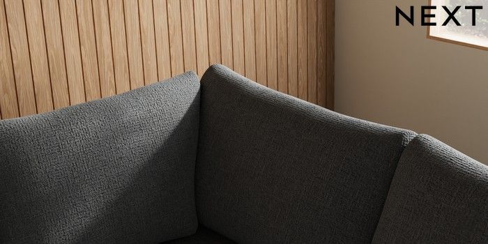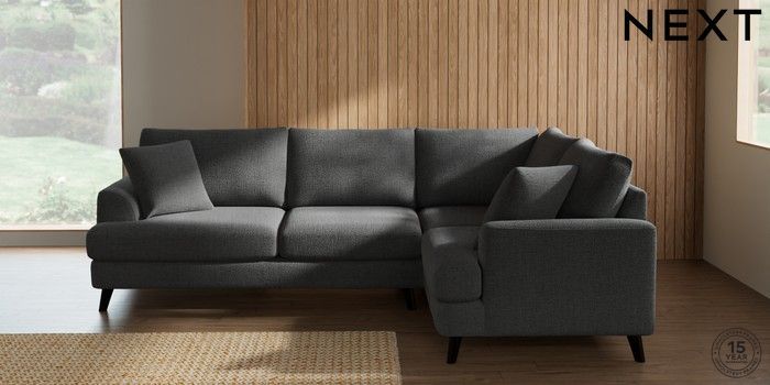 7.2.10 Buy Parker Medium Corner Sofa - Right Hand Chunky Texture Dark Grey Low Retro Tapered - Dark from the Next UK online shop Click here to use our accessible website